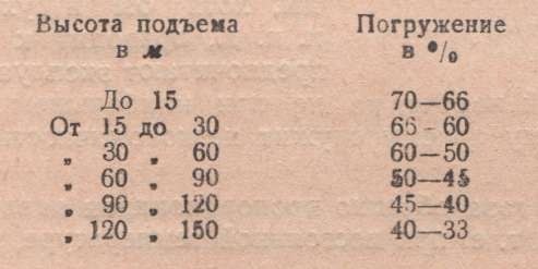 Таблица 3. Данные для определения процента погружения