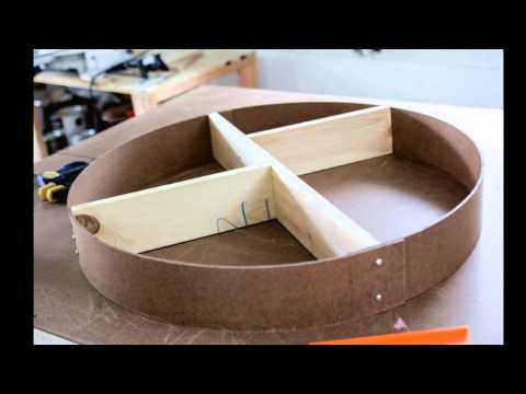Уложите полки внутри металлического обруча. просверлите отверстия с обеих сторон полок и закрепите их при помощи шурупов.